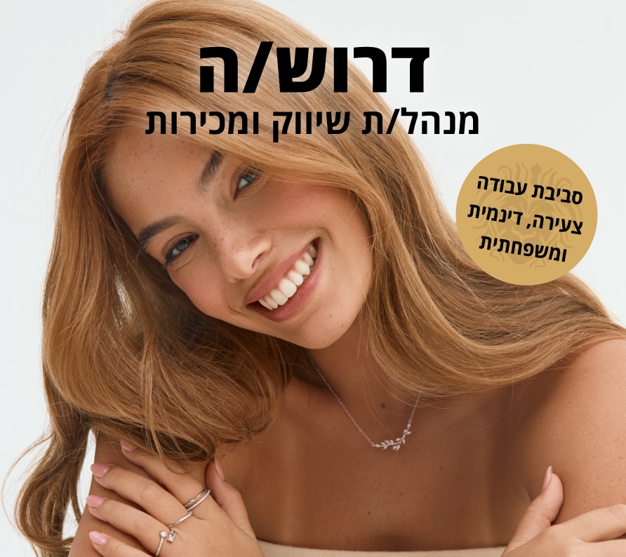 דרוש/ה מנהל/ת שיווק ומכירות למותג תכשיטים מוביל ברחבי הארץ