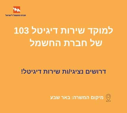 נציג/ת שירות דיגיטלי למוקד 103 בבאר שבע
